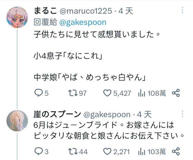 推主:「說到六月就是六月新娘。是跟新娘子很相襯的早餐喔,請這麼告訴你女兒。」