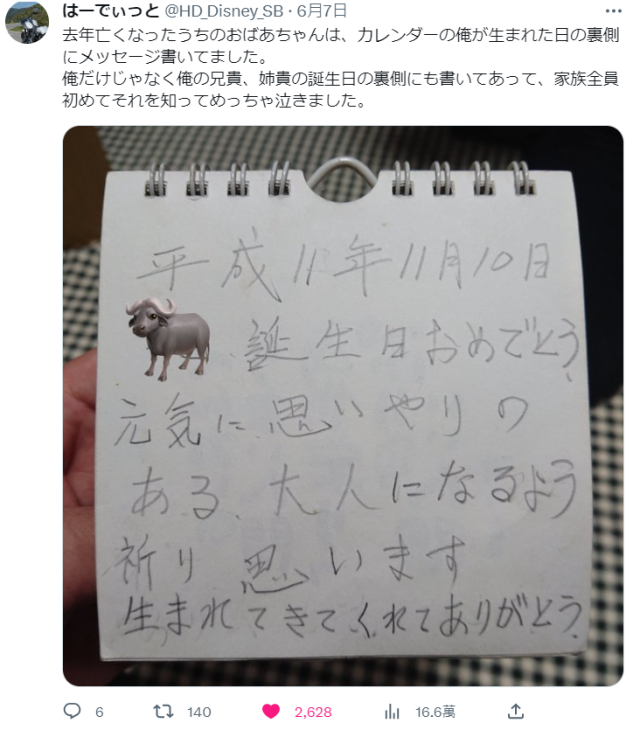 ▼ 網友:「去年過世的奶奶,在日曆上我生日那天的背面寫了留言。不只是我的,還有我哥我姊的生日那天背面也都有寫。第一次知道的時候家裡所有人都哭到不行。」
