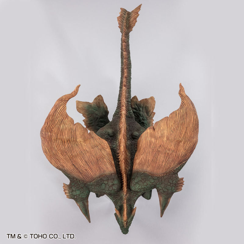 「怪獸番外地 魔海獸 達哥拉」由新銳怪獸設計師淺井拓馬擔任原型製作,擁有全長約 46 公分魄力尺寸,寫實風格細膩刻畫出結合爬蟲、魚類的造型與兇惡的頭部,四足都具備可微幅轉動的設計,更能藉由替換零件方式再現初期四足爬行狀態、完全體時的飛行狀態。配件中更附上一隻高約 6 公分、在劇中化身奇蹟之水令摩斯拉強化為「彩虹摩斯拉」的水精果果!
