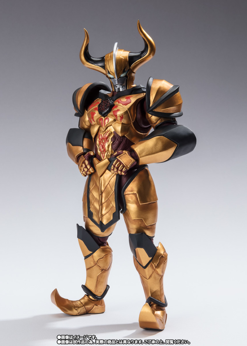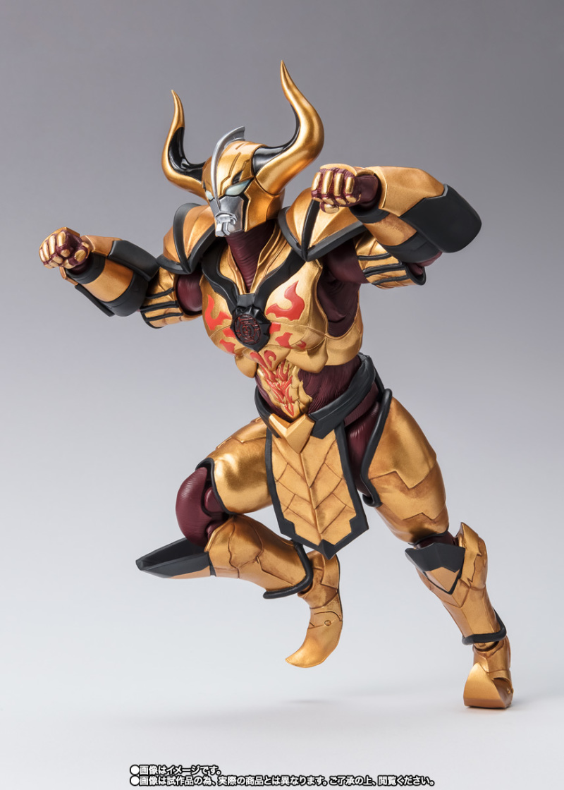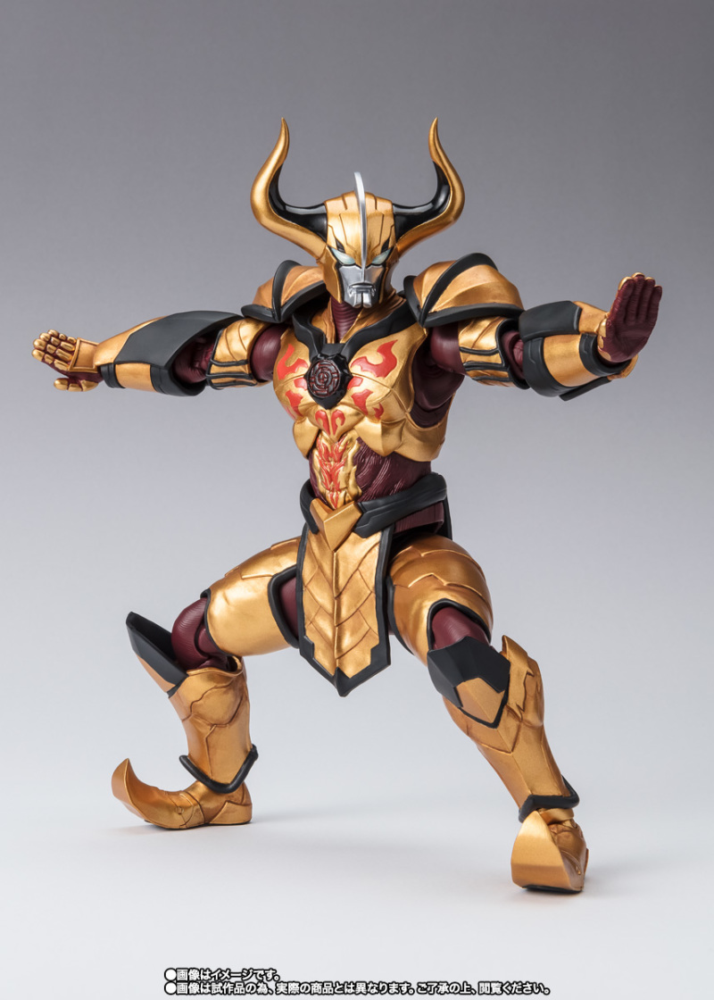 「S.H.Figuarts 阿布索留特・迪亞波羅」由圓谷製作造形部門 LSS 徹底兼修,以全高約 155mm 的可動規格徹底再現劇中壯碩的金黃身軀,細膩刻畫出全身肌肉紋路、裝甲花紋等造型並以塗裝再現胸口紅色的猛牛紋章,能藉由全身靈活的可動關節設計把玩出施展必殺技「剛力破牛拳」的姿態!