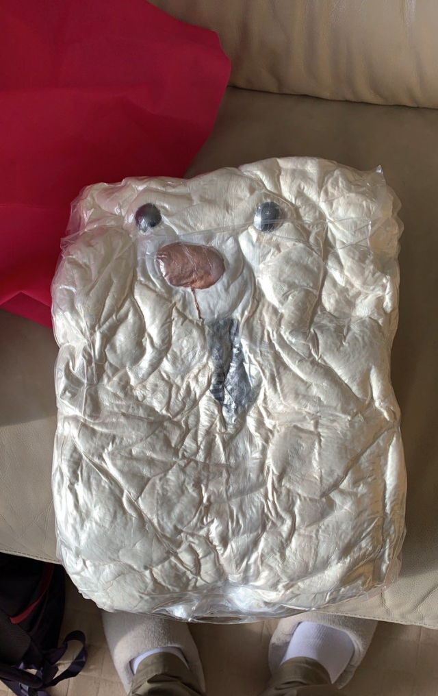 雖然這並非「實物與宣傳圖的差距」的案例,但或許包裝上...可能這種問題就難以避免了,畢竟原本熊熊大小可能真的無法好好運輸,只能透過真空壓縮減少體積,但各位真的收到應該也會跟推主一樣的反應吧 XD。