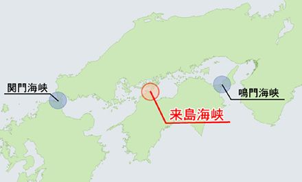 ▼位於瀨戶內海的來島海峽長達4公里,是比鳴門海峽還要寬廣的海峽。古有「一來島、二鳴門、三馬關瀨戶(關門海峽)」的俗諺。
