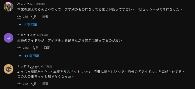 不少網友也讚嘆她的不輸原唱的功力,更是以一個實力偶像歌手的姿態唱出這首「IDOL」,魅力真的無限阿...。