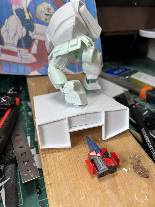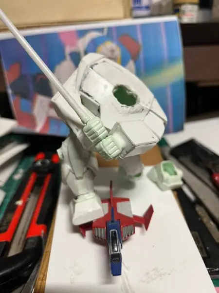 推主就秉持當時作畫崩壞的風格,透過舊套件與塑料板裁剪粘貼而成,基本上快成為製作一個新的模型了,畢竟舊套件也沒有到崩壞,必須重新捏製成動畫那個樣貌。
