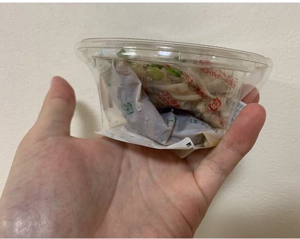 畢竟,想讓食物看起來份量多並不難理解,可是如果買來之後還得先把食物推開、挖出下面的調味料包之後才能吃......這在設計上實在是很不方便啊。