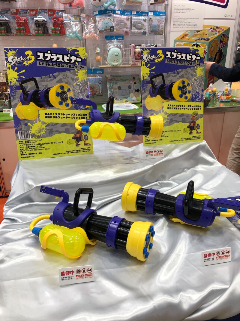 日本玩具商 LYRIC 公司於日前舉行的『東京玩具展2023』中,展出了以任天堂人氣射擊電玩《斯普拉遁3》為主題的最新商品「斯普拉旋轉槍造型 電動泡泡槍」試作品,預計 2023 年秋季正式發售。