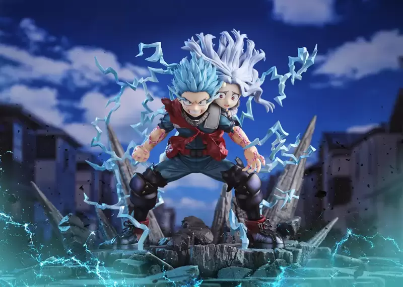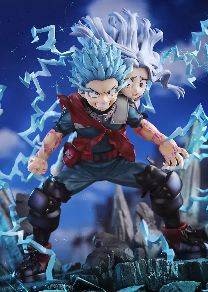 「S-FIRE 綠谷出久&壞理」比例模型,將出久與壞理共同並肩作戰的震撼場面立體化!在約高 23 公分的尺寸中,還原綠谷發揮個性 ONE FOR ALL 全覆蓋 100 %的大魄力造型,雙臂的英雄服爆破,並因超負荷力量而導致血管發光,雙眼更是噴發如閃電般的特效;背上的小壞理使出回溯的能力,讓綠谷回到發生嚴重副作用發的狀態!從身體與拳頭蹦發出的氣和特效搭配地台揚起的碎石,展現強烈張力!