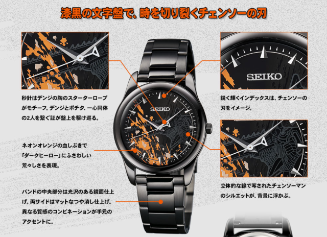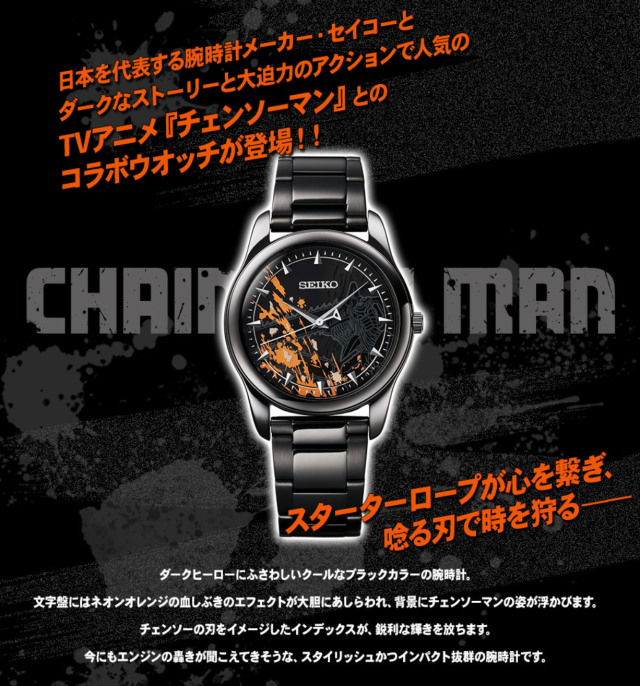 日本知名鐘錶製造商「SEIKO」過去已和多項ACG相關IP合作推出造型錶,也頗受粉絲好評。近日宣布將推出去年人氣動畫之一《鏈鋸人》為主題的限量聯名手錶,以主角鏈鋸人淀治為基礎設計。限量 5000 副,售價為 54,780 日圓,目前可於官網預購。