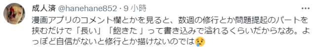 ▼「因為只要修行或者申論的篇章連續好幾週,漫畫app的評論欄就會充斥著『 好長』 、『 膩了』 ,不是很有自信的話實在寫不了修行啊」