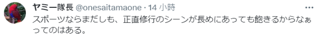 ▼「運動番有修行的部分還可以,但說實在話修行的畫面太長了也會覺得:膩了啊~ 」