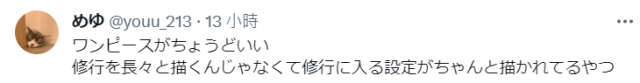 ▼「我覺得航海王就剛剛好,不會把修行描寫得太長而是有好好描寫「有修行」的設定」