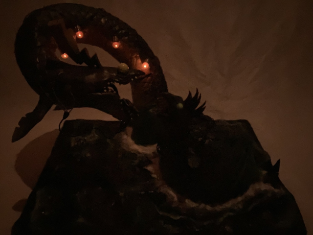 另外作者還加了點機關,關燈後「辰龍」的身體會發出微光,也體現了牠在遊戲中的設定。