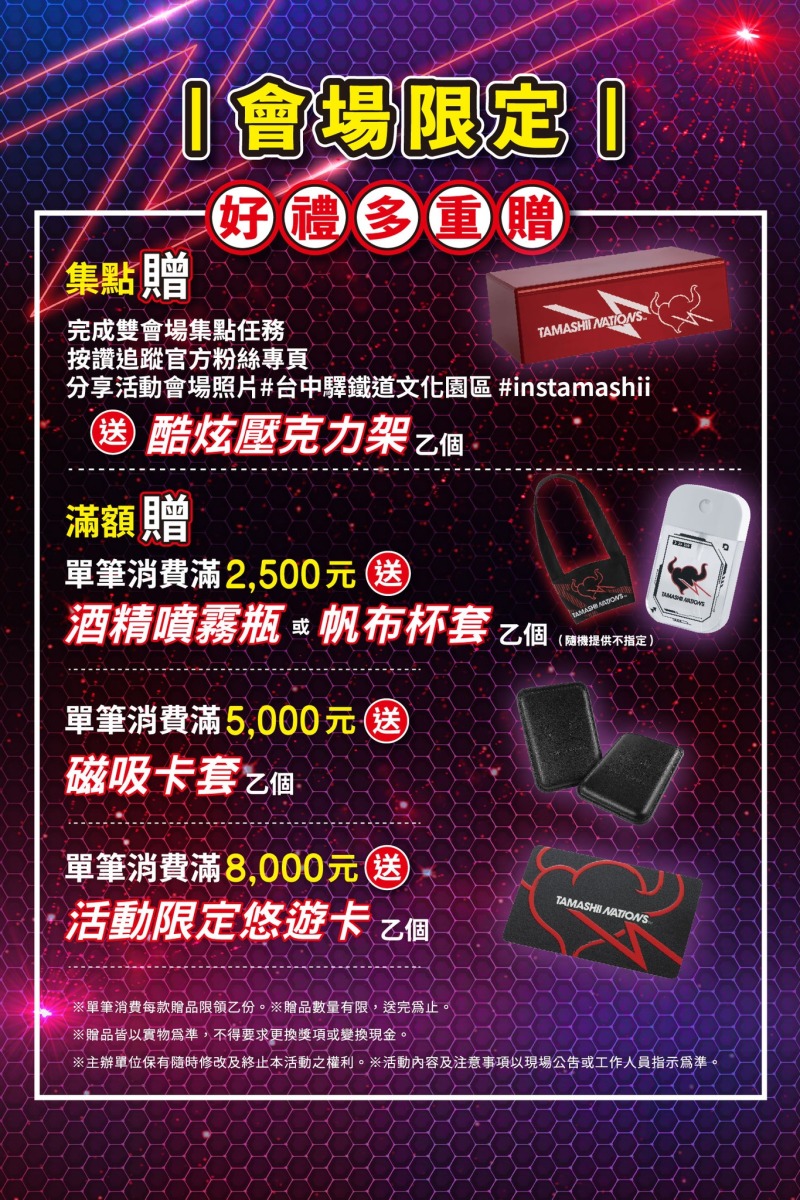 精彩豐富的展覽內容,還有豪華的限量商品與各種好康,各位中部地區的玩具人可要把握時間,別錯過今年的『TAMASHII POP UP SPOT in 台中』!