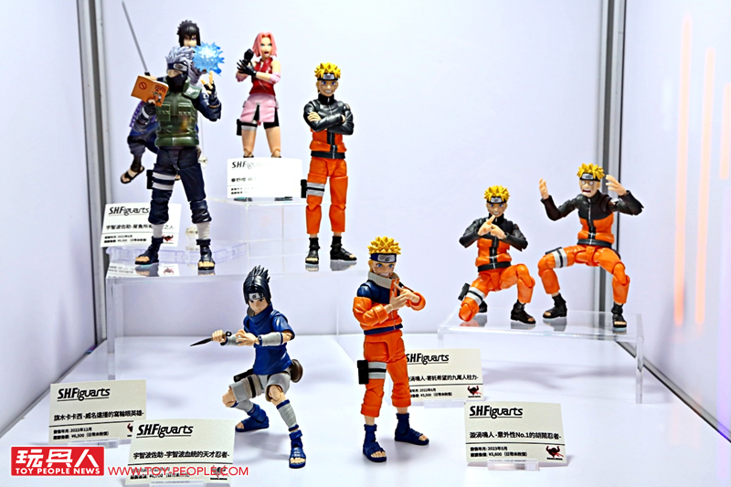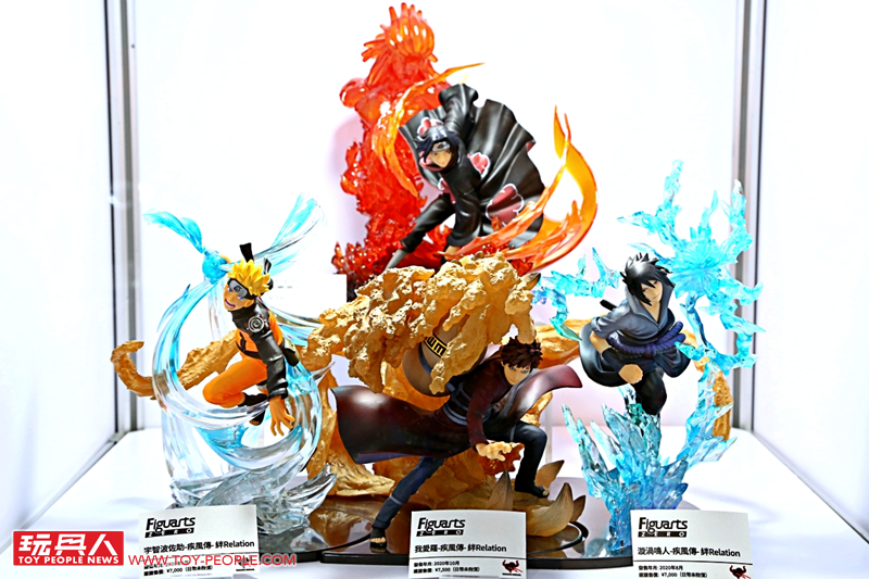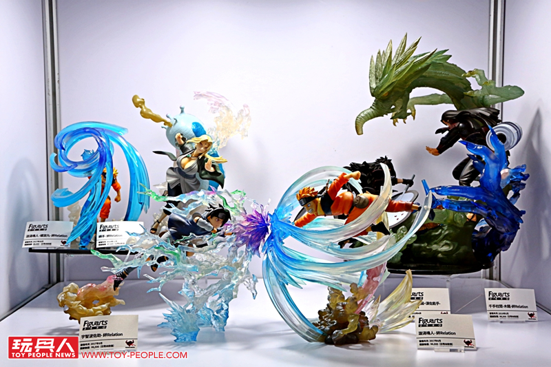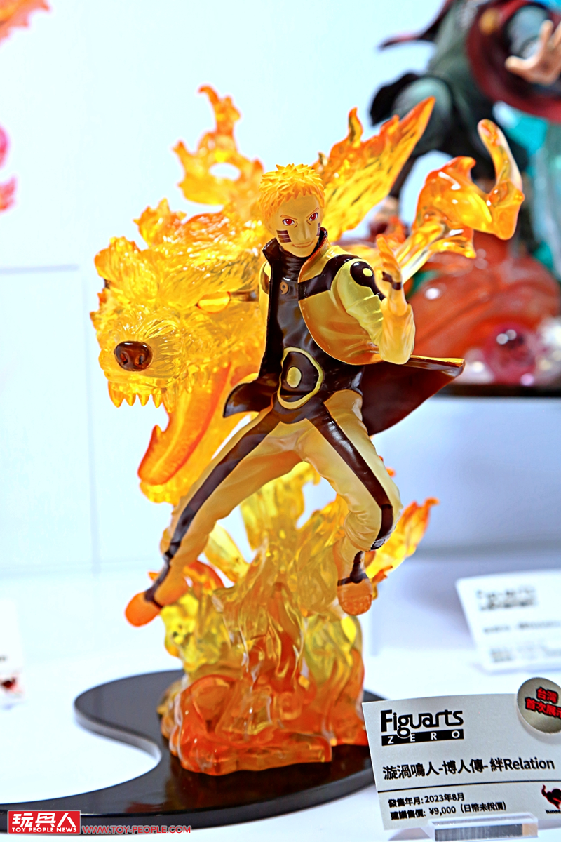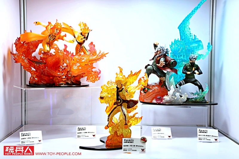 一進到會場首先看到的就是JUMP三本柱之一的《火影忍者》,讓各位玩具人能夠一次欣賞許多過去的精彩作品,而重點就是首度曝光的最新作 - 「漩渦鳴人-博人傳-絆Relation」PVC塗裝完成品,使用大量半透明材質打造充滿魄力的九尾特效零件,以及金黃色漸層塗裝的九喇嘛模式的鳴人,親眼見到實品絕對能強烈感受到這款作品的超高製作水準!