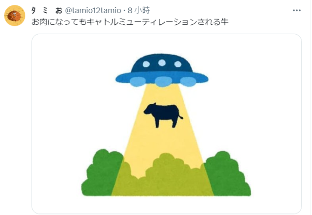 ▼「就算變成肉了還是被飛碟綁架的牛!」