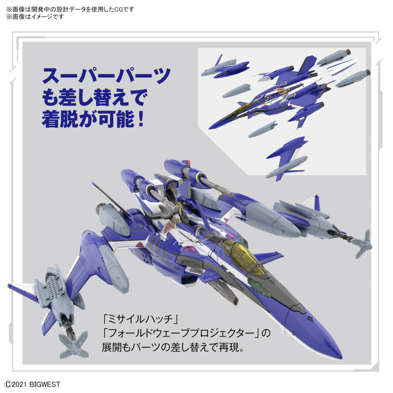 武裝配件除了基本的 GUNPOD、盾牌、戰鬥短刀外,還附上一套新規製作的超級組件再現強化形態,包含導彈艙、FOLD波投影裝置都能藉由替和零件方式再現展開狀態。