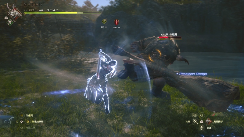 而其他的主動技能,也都有著各式各樣的效果,甚至有不少是針對反擊特定攻擊和連段而設計,所以熟練的玩家,可以透過靈活的切換召喚獸,來打出華麗的連續攻擊。連段方式非常自由多變,爽度也很夠,遊戲還搭載了可以變身為半顯化者的「極限爆發」等系統,進一步增加戰鬥的變化性。雖然在切換鎖定敵人和視角轉換的機制稍微有些不太方便,但在這部分的遊戲性絕對是瑕不掩瑜。