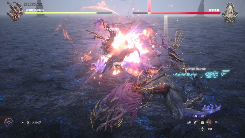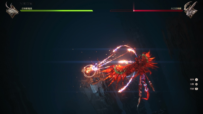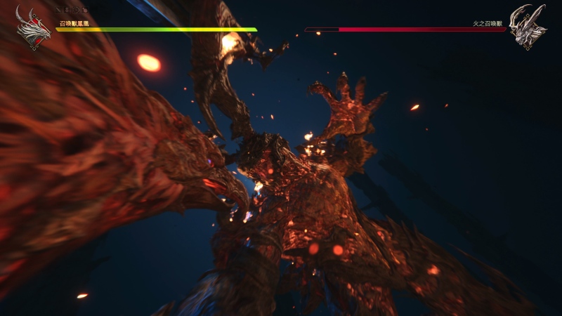 在觸發召喚獸對戰時,玩家控制的伊弗利特將會與其他召喚獸展開壯觀的的對戰。這部分的操作遠比人型來的容易,不只是可以使出霸氣的火焰衝鋒突破對手的彈幕,還可以在攻擊後追加魔法使出爆燃等魄力十足的招式。且在戰鬥中會有大量的QTE,能充分讓玩家感受到召喚獸們毀天滅地的戰鬥力,這部分筆者就不在多贅述了,請各位玩家自己進場看戲吧!