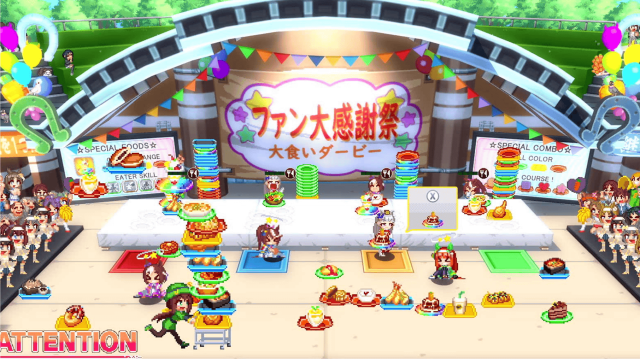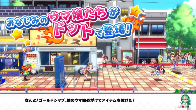 目前公布的遊戲項目包含 : 「大障礙賽」、「籃球」、「大胃王」與「躲避球」 四種,最獨特的就是整體風格以懷舊的 2D 點陣風格展現,有種讓人 Y2K 回到過去的遊戲畫面,卻是全新馬娘的遊戲,是不是你感覺瞬間有種文藝復興感 XD。