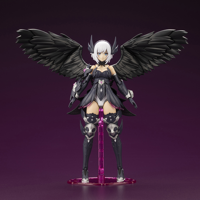 配件附有再現「戰鬥模式」各部裝甲零件、劍、鞘、專用台座以及 5 對不同的PVC造型手掌、祈禱姿勢專用手掌可替換,更能使用印有多種眼睛、嘴型的水轉印貼紙來自製喜歡的表情。此外壽屋模型當然也不能少了有趣的互換性,全身採用通用的 3mm 卡榫、背部則有『HEXA GEAR』規格六角形卡榫,更附有『骨裝機娘』『女神裝置』頭部轉接零件,能與壽屋推出多種組裝模型共用零件。