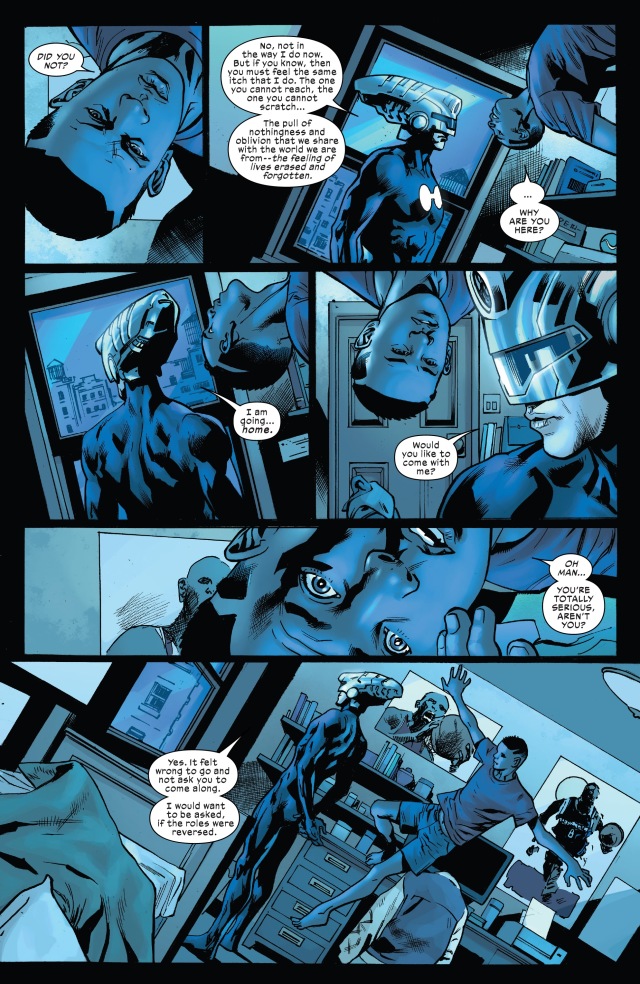 不過邁爾斯自從《秘密戰爭》(Secret Wars)後來到正史宇宙,生活一直都算相當愉快,沒打算要回去。但是造物主姑且還是留給了他聯絡方式。