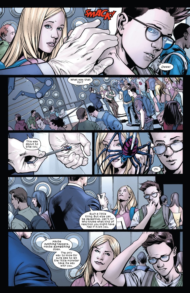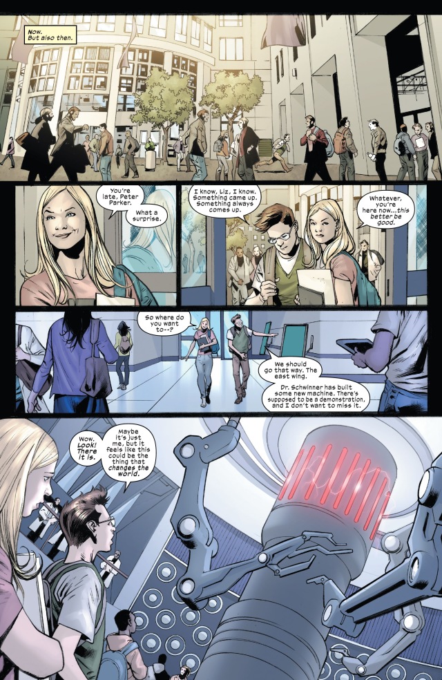 畫面來到了「現在」,同時也是「過去」——彼得‧帕克被輻射蜘蛛咬到的那一天。但是這次他身邊的人似乎與以前並不一樣?