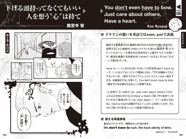 近年非常火紅,由和久井健創作的漫畫《東京復仇者》,推出動畫後人氣高漲,連帶漫畫也銷量爆棚,真人電影版也熱賣。近日講談社宣布,將推出以《東京復仇者》為主題的「英語會話專用書」,給小學 1~6 年紀的朋友學習英語並複習,希望在教育上能夠給予適當支援,讓小孩的教育效果提升。
