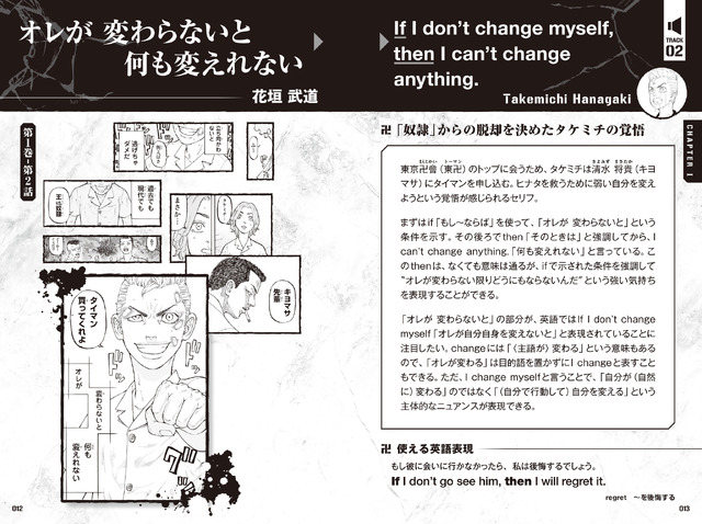 其實概念上很簡單,就是將劇情中的台詞,用日英對照的方式讓小朋友能夠學習英語會話,透過這種方式讓小朋友能對英文更有興趣,了解單字與語句的用法,讓你喜歡《東京復仇者》之餘,還可以讓這些角色教你學英文,一舉兩得呢 XD。