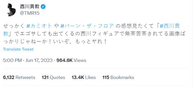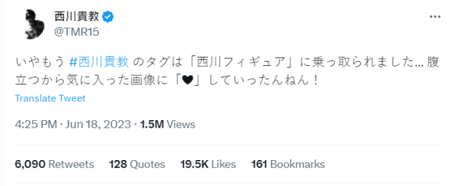 西川貴教本人後續再表示,雖然看到很多莫名其妙的搭配擺拍照,有點生氣還是會按下喜歡的愛心,希望大家再繼續玩出新滋味,看來教主本人樂在其中阿 XD。