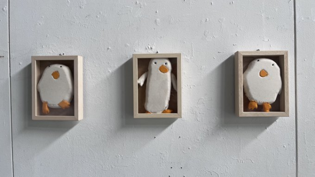 ▼裊葉はるた自製的玩偶有鴨鴨和尖嘴圓尾頜針魚(ダツ)
