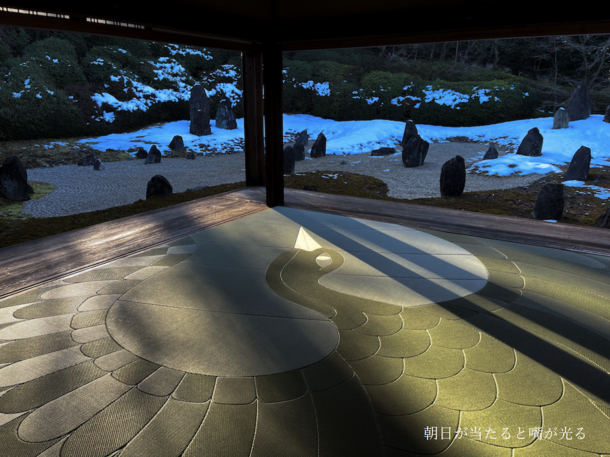 ▼光影變化的秘密就在於每個區塊的榻榻米直紋方向各不相同,造就了塌塌米顏色深淺