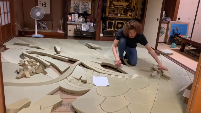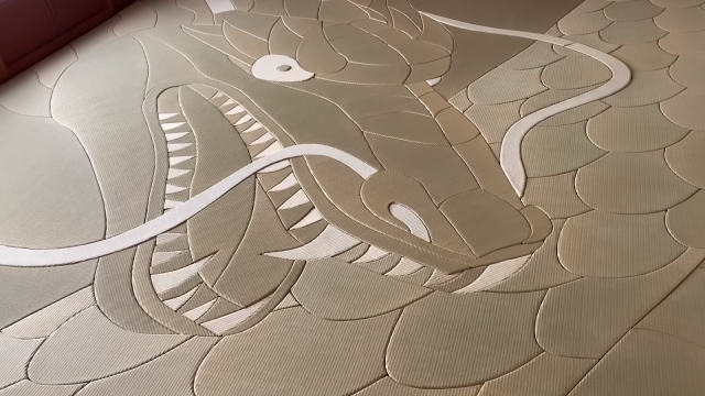 山田憲司也曾在YouTube頻道公開過「龍の畳」的製作過程,其實沒有用到什麼想像不到的新科技,只是有著縝密又專業的前置設計,再投入驚人的製作時間一點一滴的手工製作。