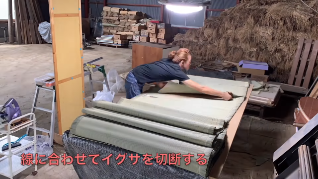 ▼將每塊榻榻米元件都鋸下來,光是這個切割的過程就需要好幾天