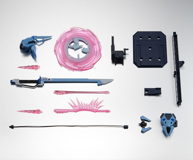此外配件中還包含種類豐富的特效零件,除了能重現對艦刀的光束刃展開狀態,還能把玩出肩部光束迴旋標的展開、投擲出去的迴旋狀態,以及可自由彎曲的纜繩零件再現左臂火箭錨的發射狀態,藉由專用台座還能將各部零件單獨掛載於支架上展示。