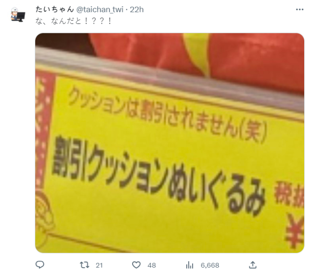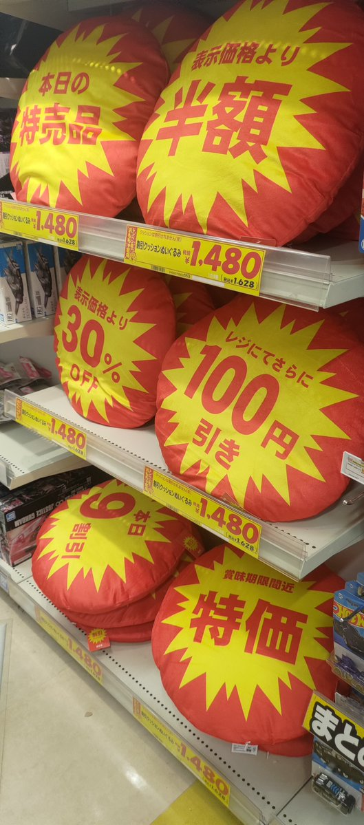 雖說這個「促銷標語抱枕」實用程度應該...不怎樣 ( ? ),但奇妙的設計真的讓不少日本網友表示想買一個回來,也發現「半價」這款好像最熱賣,看來算是一個成功的設計 ! 不知道各位電電夥伴覺得這個怎樣呢?會想買回家擺一個看看嗎 XD。
