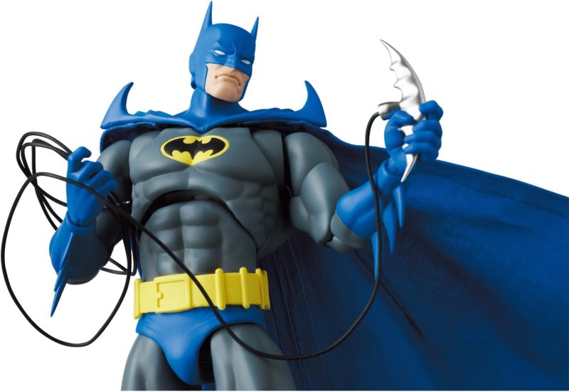 本作高約 16 公分,依照漫畫設定再現了復古味滿滿的灰藍配色蝙蝠戰衣,肌肉線條的形塑有著不錯的表現,披風則是以軟質布料製作,可以利用三款頭雕、頸部零件,以及可自由拆卸的披風把玩出豐富的造型變化,配件部分還包含綁著繩索的蝙蝠飛鏢、替換手、可動支架,與同時間推出的班恩一起購入,重現黑暗騎士的惡夢吧!