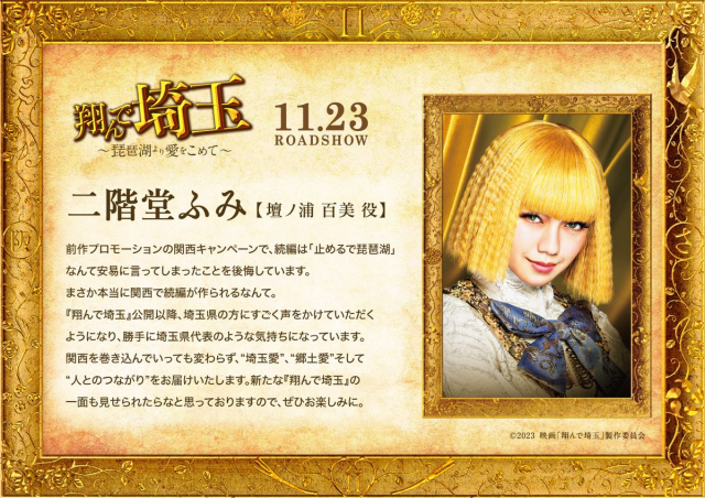 由二階堂富美與 Gackt 主演 2019 年上映的電影《飛翔吧!埼玉》(翔んで埼玉),以詼諧嘲諷的風格獲得不少粉絲喜愛,先前也曾宣布將會製作續集。今日 ( 6/28 ) 官方正式宣布《飛翔吧!埼玉~來自琵琶湖的愛~》 ( 暫譯,翔んで埼玉 ~琵琶湖より愛をこめて~ ) 將於今年 11 月 23 日於日本上映,並釋出前導視覺圖與特報影片。