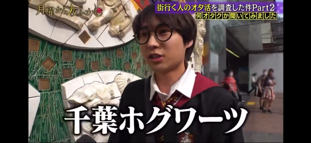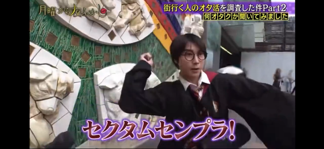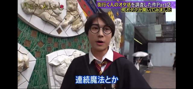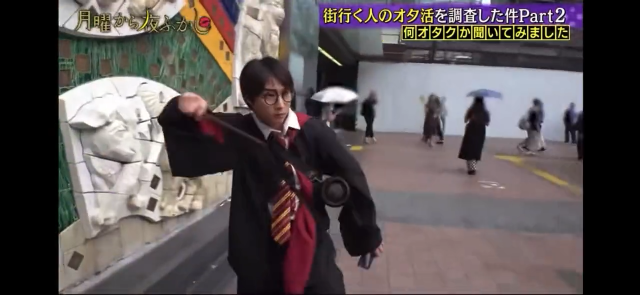 節目採訪者在發現「哈利波特宅」Coser,並詢問為什麼隨身攜帶的音響到底在播放什麼音樂後,這名Coser便在放送聲音的同時,揮舞著他手上的魔杖,表示這是為了要發出甩魔杖的聲音,才特別準備的「隨身音效」。