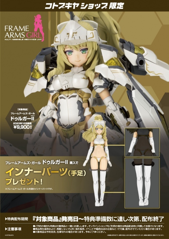 由日本模型商壽屋(KOTOBUKIYA)所推出的人氣機娘組裝模型《FrameArmsGirl 機甲少女》系列發表了最新商品「突伽II」預計於 2023 年 12 月發售的消息。