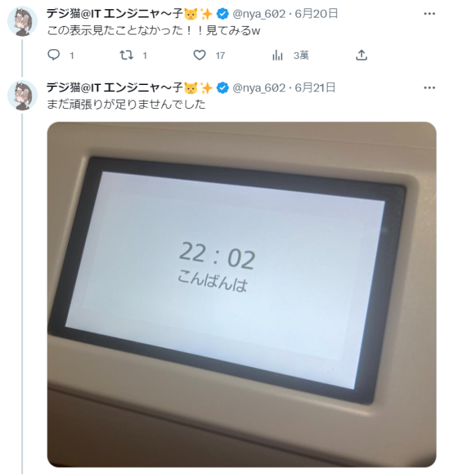 ▼有人家裡跟推主是同款Panasonic機型,但沒看過相同訊息所以馬上跑去看。洗衣機:「晚安。」