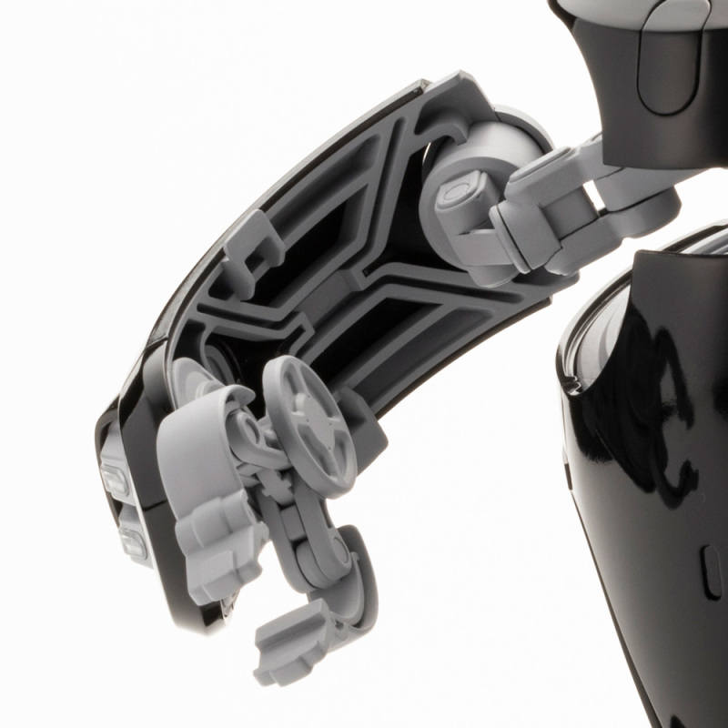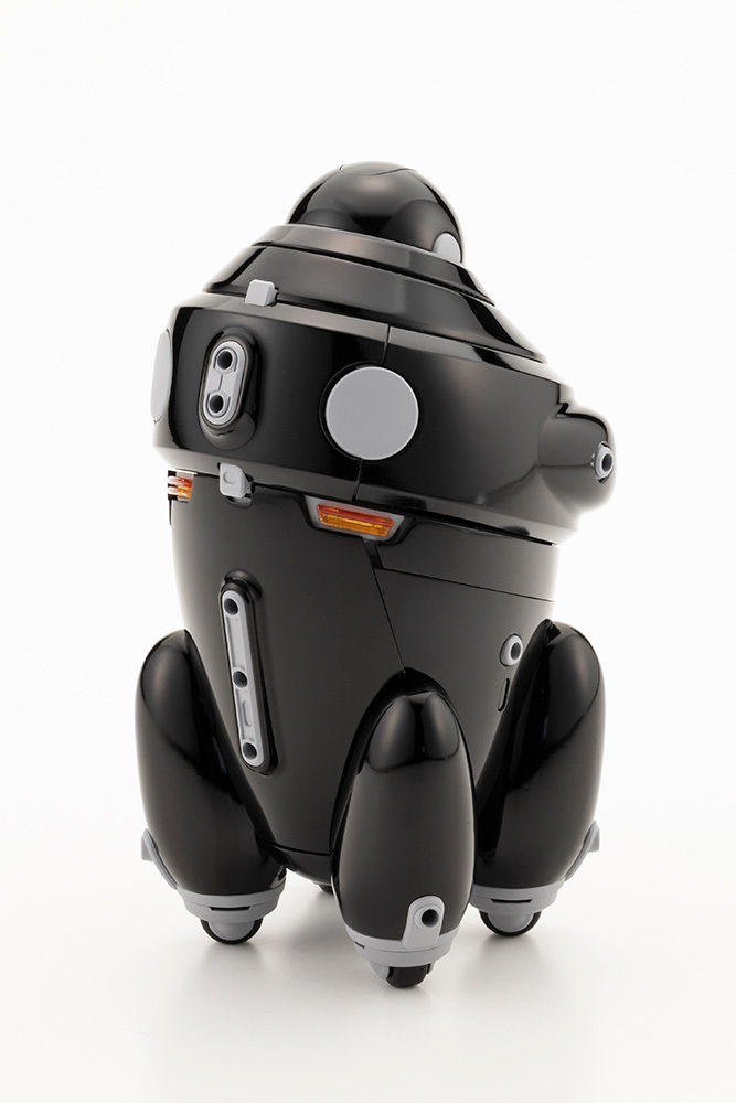 相較 2019 年推出的 GK 版本,此次以組裝模型規格商品化的「MAMORU」由 MiZ 大幅重新設計結構,將外觀細節數量大幅提升。「黑色Ver.」與「白色Ver.」的差異僅在零件成形色,其餘內容都相同。在這小巧可愛的 14 公分尺寸中,MAMORU 看似一個用四顆滑輪行走的圓滾滾機器人,實際上內藏著精密的骨架內構!
