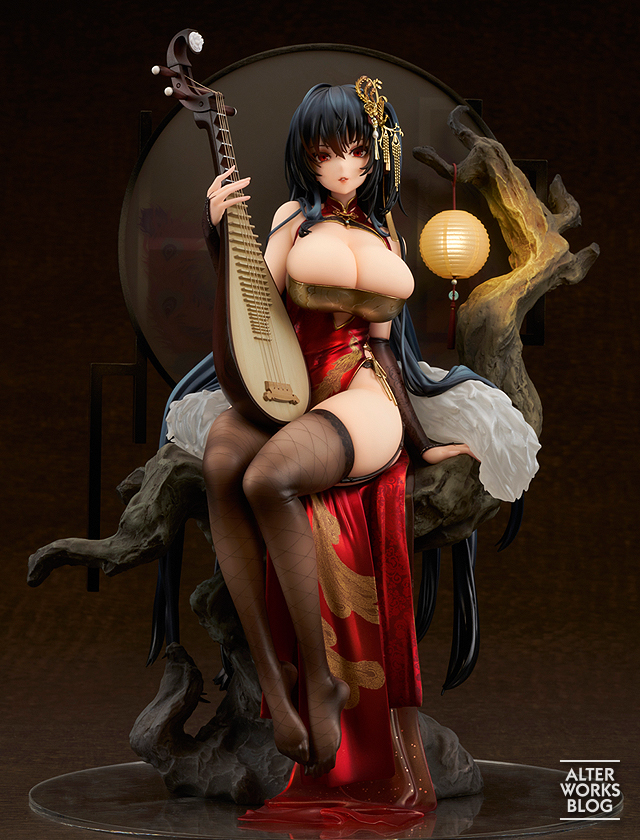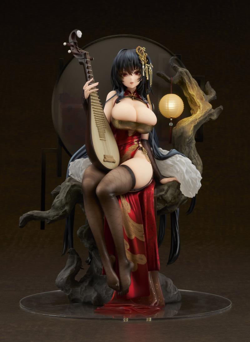 在《碧藍航線》的設定中,隸屬於重櫻陣營的「大鳳」是 SSR 裝甲航空母艦,原型是舊日本帝國海軍的裝甲航空母艦大鳳號,遊戲裡的預設造型是黑色雙馬尾的巨乳美少女,對指揮官有著強烈的佔有慾!這次依照 Live2D 造型「鳳鳴春曉 (春の暁に鳳歌うVer.) 」打造的模型高約 25 公分,露出度極高的東煌風旗袍加上快要跳出來的雄偉雙峰,肯定會將指(你)揮(各)官(位)的目光牢牢鎖住,由開衩極高的旗袍、綁帶、透膚絲襪在大腿位置所形成的肉感效果更是讓人興奮,真不愧是大鳳。