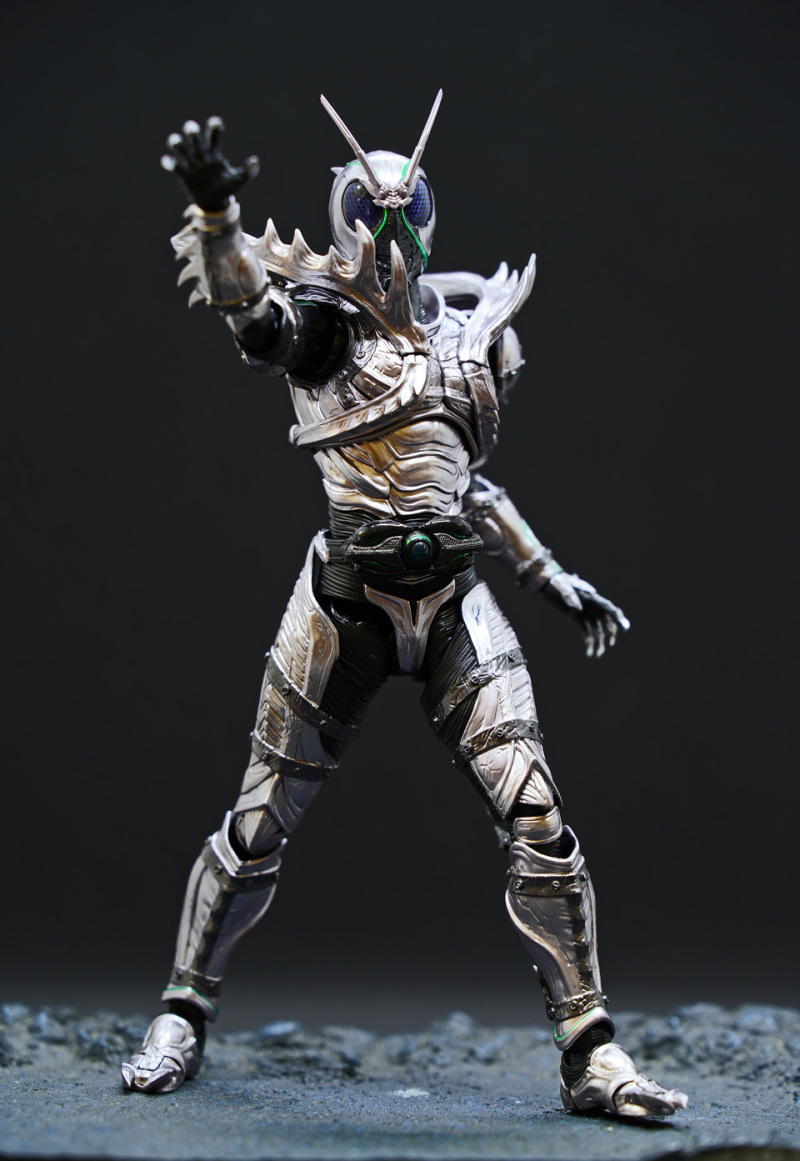 與「BLACK SUN」設計不同的頭部、胸部裝甲等,以全新造形重現,而且全身的色彩也根據裝甲部位不同,而以不同的銀色呈現。QC、上色及塗裝不俗!配件有更換用手腕左右各 4 種、武器 Shadow Blade、武器用握把柄、更換用胸部等配件。可玩性算是不錯了!Shadow Moon 全身各部分關節可動性亦不錯,鬆緊度適中,單腳站立也不成問題,採用與「幪面超人BLACK SUN」一樣的新關節配件,手肘和膝頭不只可以屈曲,還能做出「扭轉」的動作姿勢,想擺劇中任何姿勢也不用擔心。