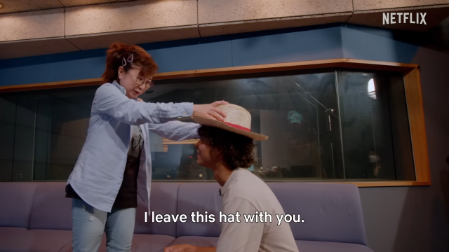 有趣的是,在公布《ONE PIECE》真人電視劇「吹替版」的同時,Netflix官方也為「魯夫」的伊納基·戈多伊(Iñaki Godoy)一行人,安排了與聲優田中真弓老師相當具有傳承意義的見面,甚至還進行了田中老師為伊納基戴上草帽的「戴帽儀式」,表現出從動畫到真人演出的傳承意義。