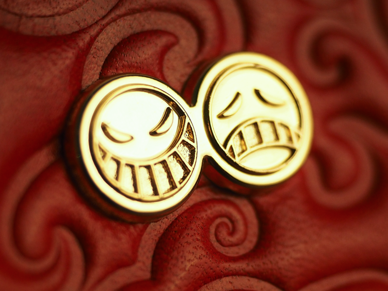 金色徽章刻有艾斯招牌帽子上的TWO FACE標誌,首次出場與最終場的戲劇性,也刻畫在長夾上。