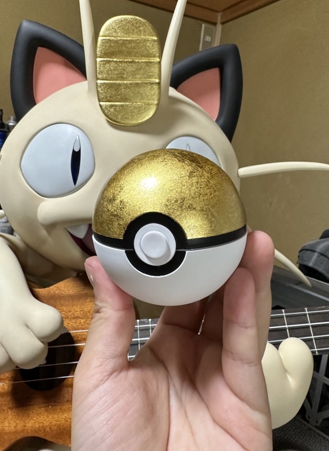 說到真實感,也不得不稍為提一下,喵喵頭上的那塊金幣,是真的用金箔紙上色的喔,當然還順便做了一顆同樣是以金箔製作的精靈球,想要的朋友可以去他的Twitter頁面參加抽選活動喔~也許你就是有機會得到的那個人~!