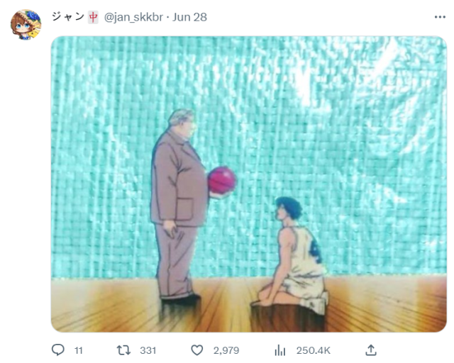 最近有推主發現,那個時期的動畫背景常用下圖《灌籃高手》這種像是幾何毛玻璃般的樣式,他就突發奇想一個「妙招」,可以輕鬆還原這種背景,他的技巧也被網友讚賞。