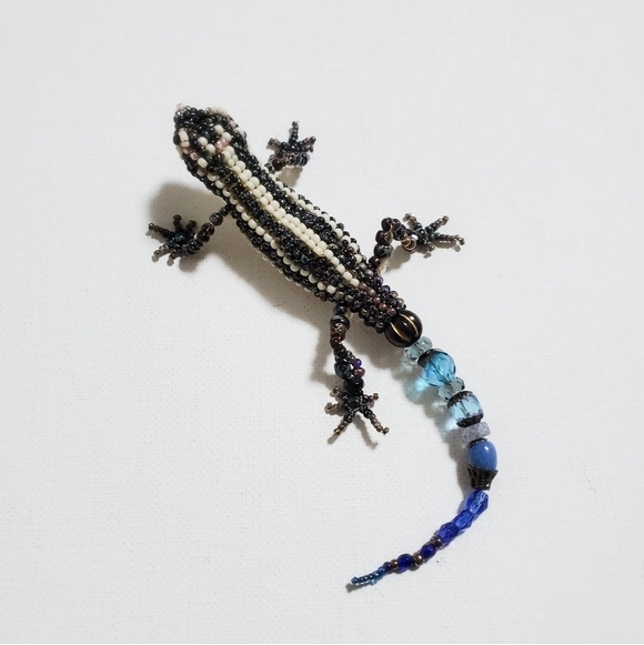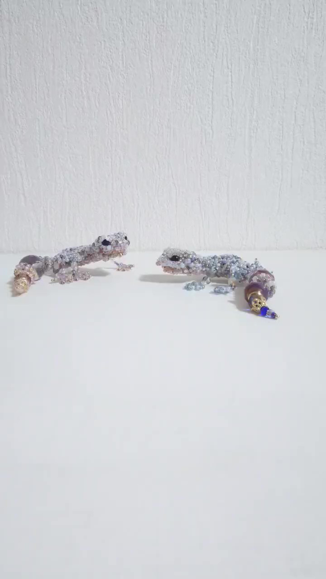 既然是串珠,那麼這兩隻小守宮當然是用線編織而成的了。也因為這樣,它們的手腳可以靈活移動,更是可以做到「嘴巴能夠開合」這種神奇的機構。此外,藝術家還巧妙地在作品中嵌入了磁鐵,使得兩隻豹紋守宮可以緊密地相互吸附,簡直是太可愛啦......