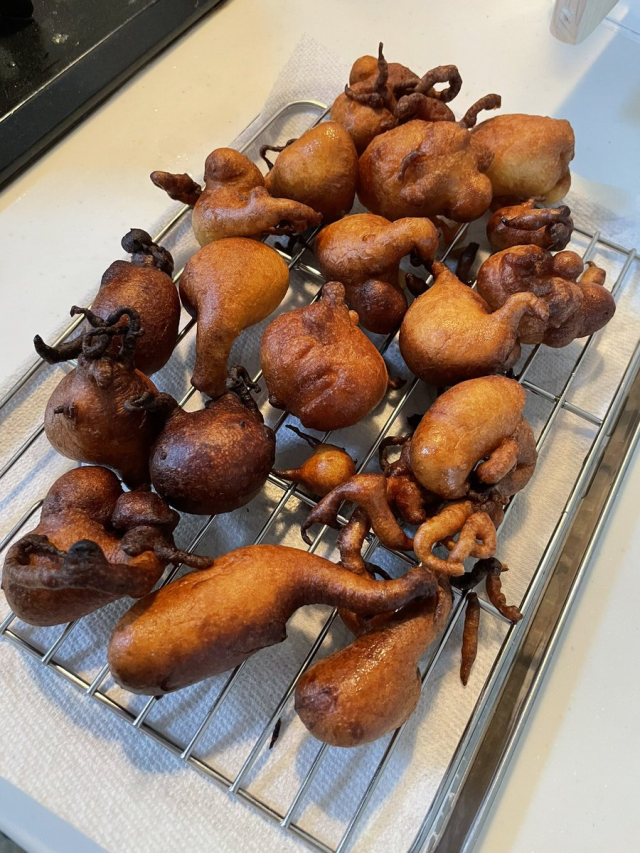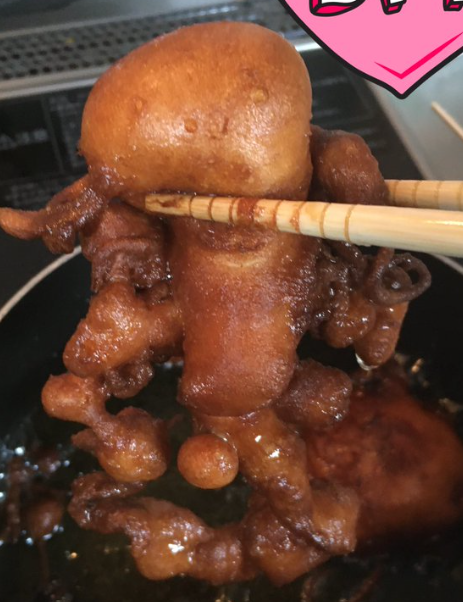 推主:「我炸的時候也感覺是不是有章魚混進去了?」