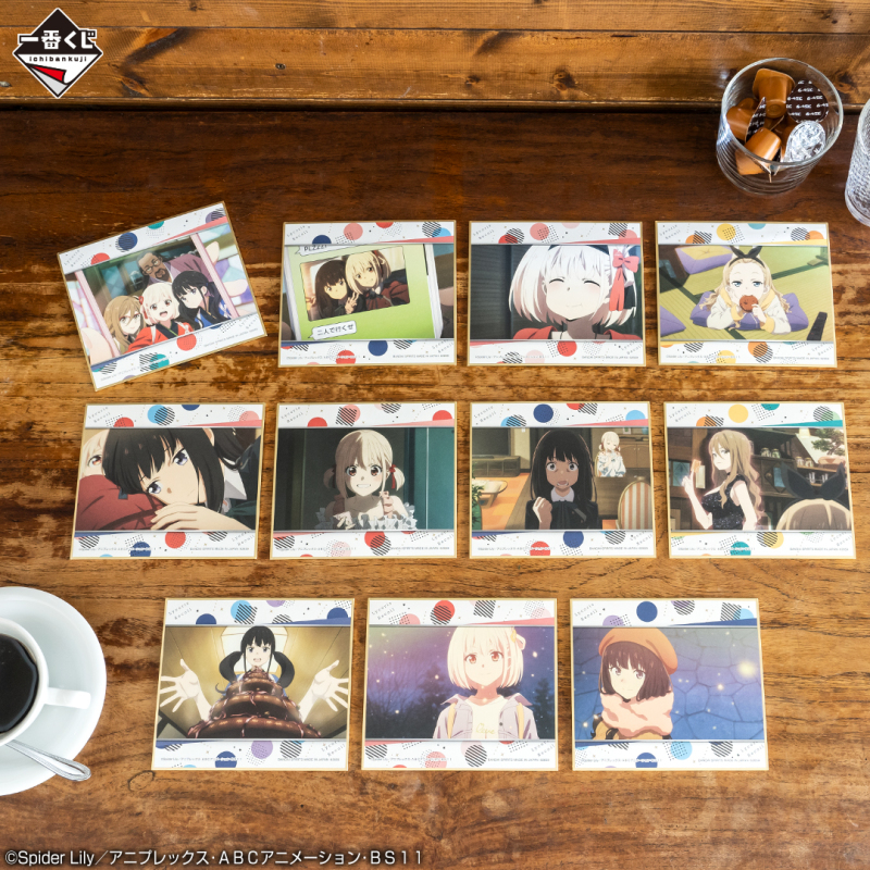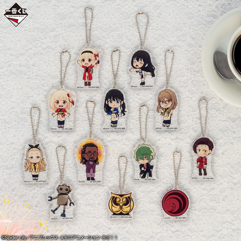 這款「一番賞 莉可麗絲」邀請動畫製作組專門為商品繪製大量新規插畫,製作成多款展現滿滿角色魅力的週邊。除了 E 獎的劇中名場景簽名板外,包含大獎 A、B 賞的千束瀧奈掛軸以及插畫版、壓克力立牌與眾多低頭身 Q 版角色的壓克力吊飾,全都是只有在一番賞才能抽到的插圖!